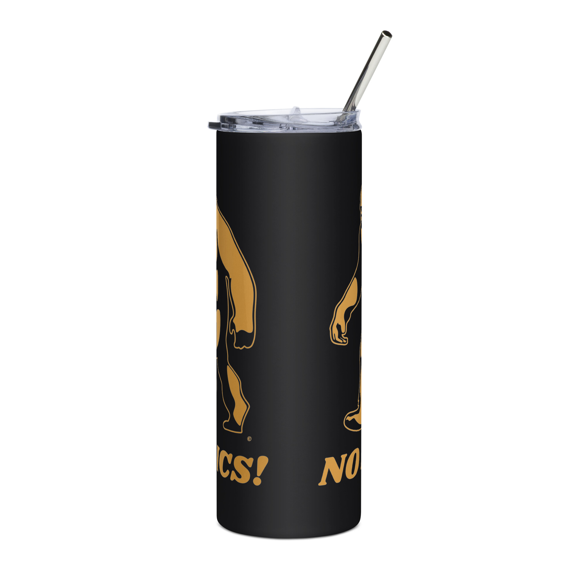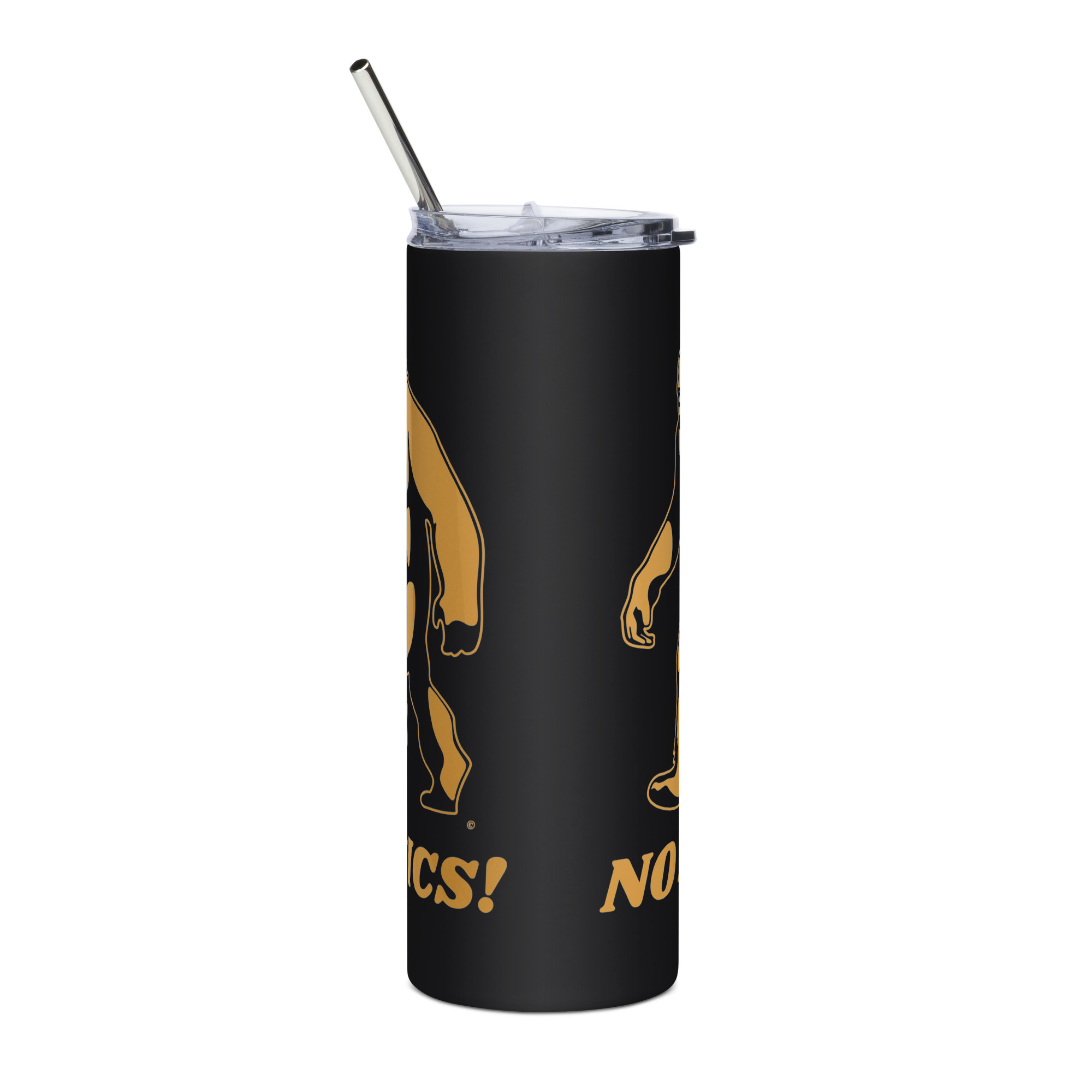 We don’t think that’s an accident. Bigfoot knows when your autofocus is struggling. He can hear the whir of your zoom lens from half a mile away. He’s not a myth. He’s just not interested in giving you usable footage. This design captures his exact sentiment in bold orange and black: NO PICS!
